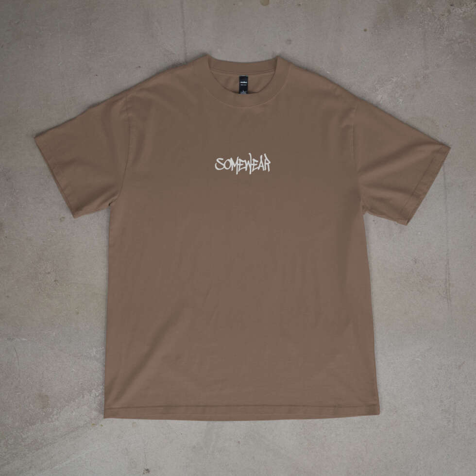 - Color: Mocha tee / red & white artwork